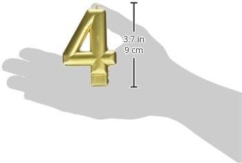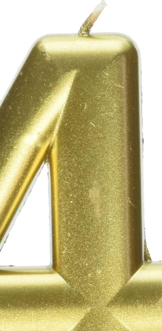 Add a hint of metallic to your birthday cake with this metallic Gold #4 birthday glitter 3. 25″ Numeral candle! Features a metallic Gold Number “4” Wax candle. Measures 3. 25″. Includes 1 candle per package.