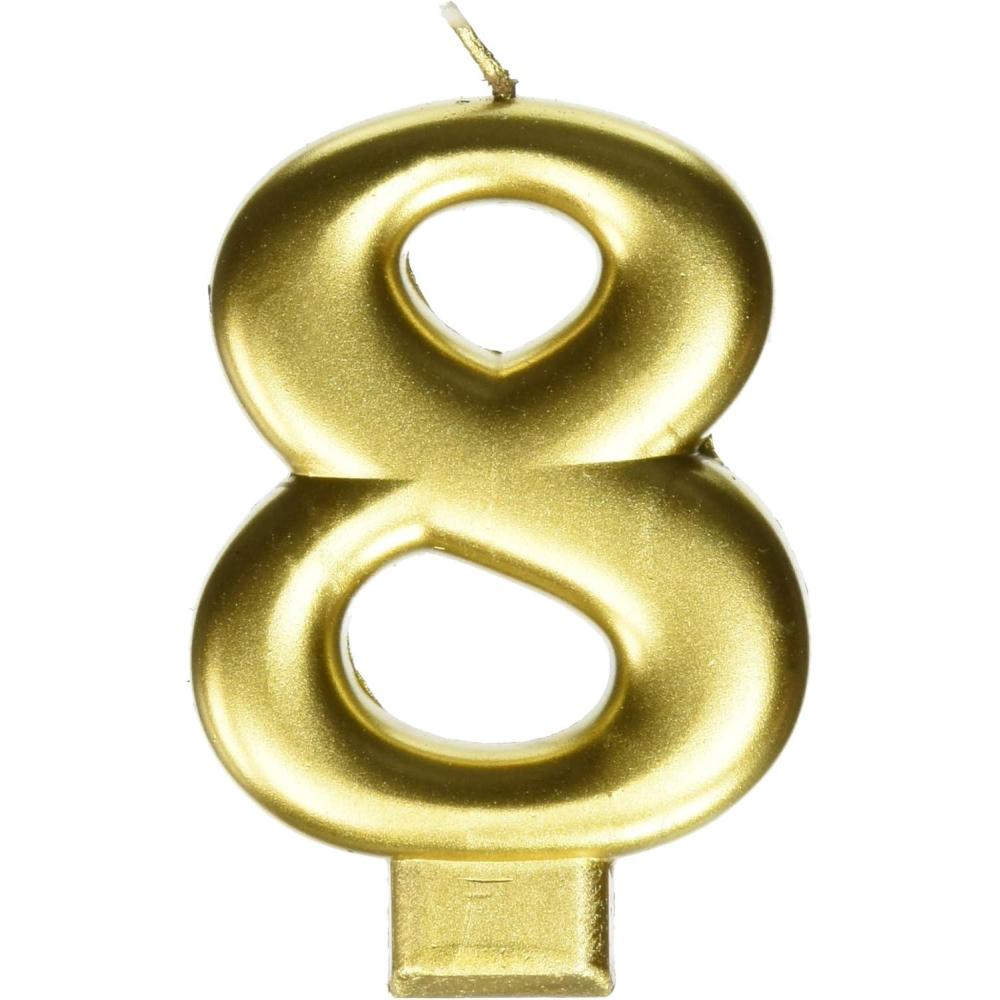 Amscan Birthday Celebration, Numeral #8 Metallic Candle, Party Supplies, Gold, 3 1/4″