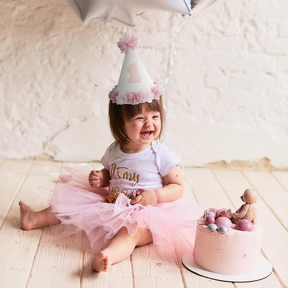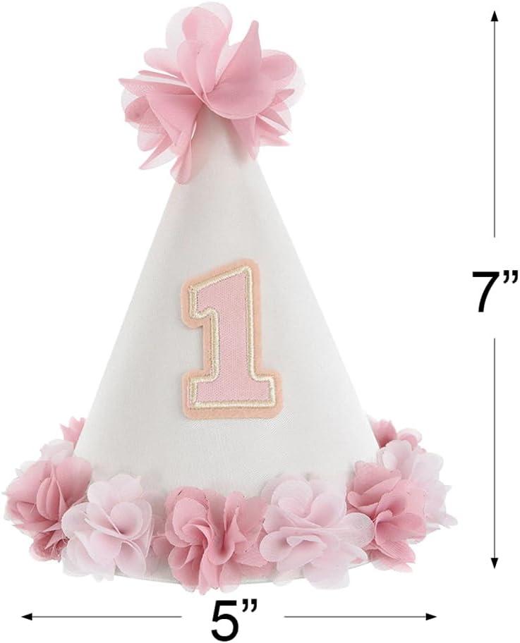 ADORABLE FLOWER DETAILING: Delight in the playful flower detailing of this lovely pink cone hat, adding a fun and whimsical touch to your little one's birthday attire.