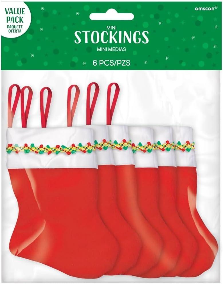 Amscan Santa’s Delight Red & White Mini Felt Christmas Stockings – 5″ (Pack of 6) – Perfect For Festive Holiday Decor & Gifts(5″ Each)