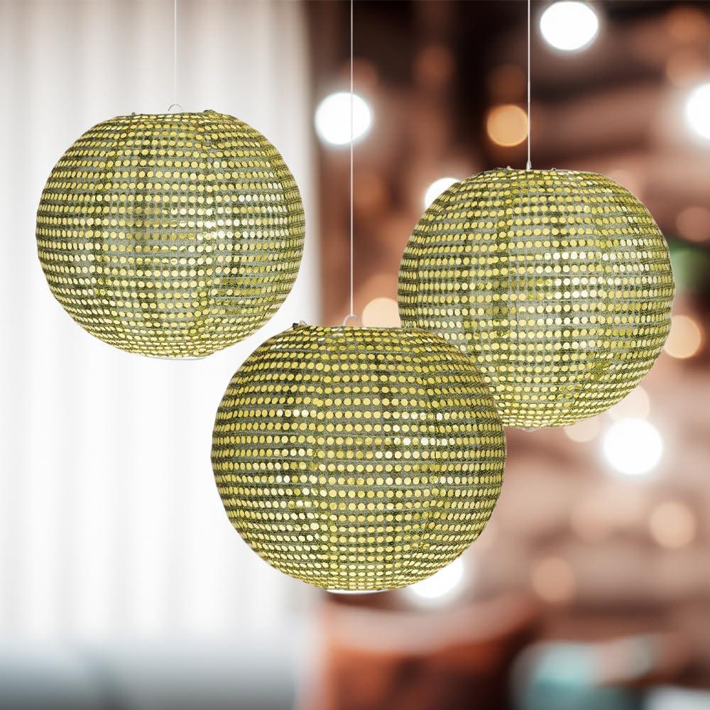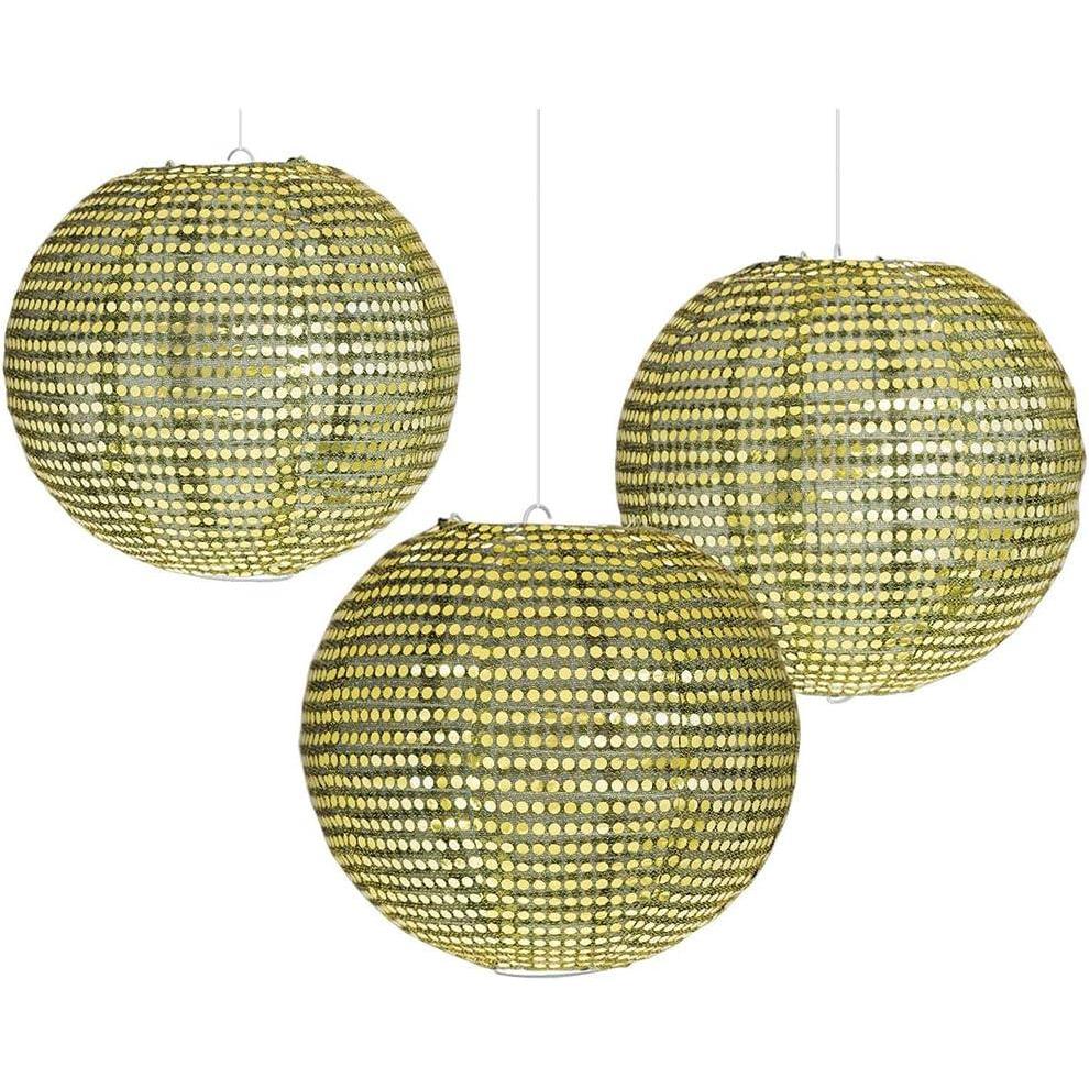 Amscan Splendid Gold Sequin Lanterns – 9.5″ (Pack of 3) – Mesmerizing Event Decor, Stylish & Sturdy Sequins – Captivating Sparkle for Weddings & Parties