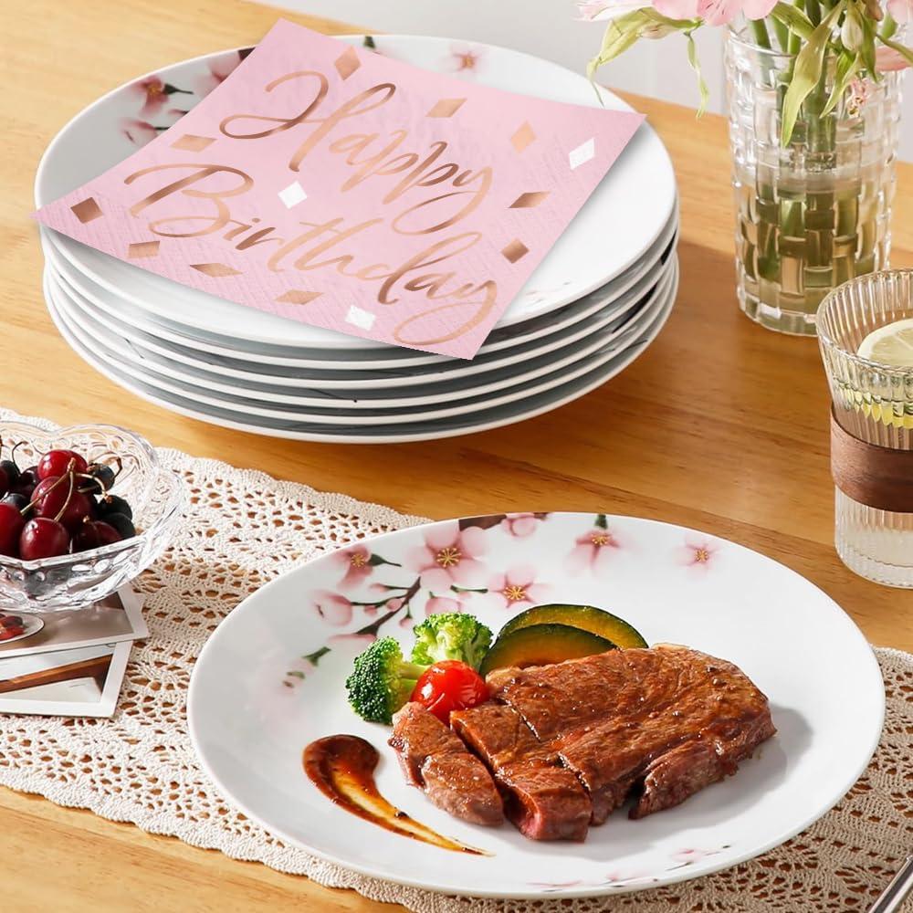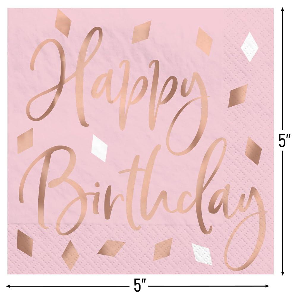 Blush Pink ‘Happy Birthday’ Hot Stamped Beverage Paper Napkins – Pack of 16 – Disposable, Perfect for Birthday Celebrations