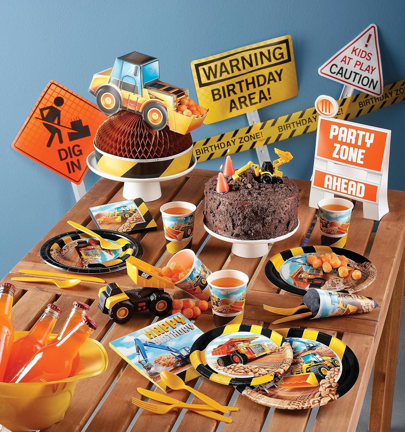 Your dining room table just became your son’s heavy duty work zone on his birthday with the big dig construction plastic Tablecloth. The plastic table cover measures 54” x 102” and features a print of a dirt road in a construction zone run over with large tire tracks. Sold individually, The plastic Tablecloth pairs with all big dig construction party supplies.