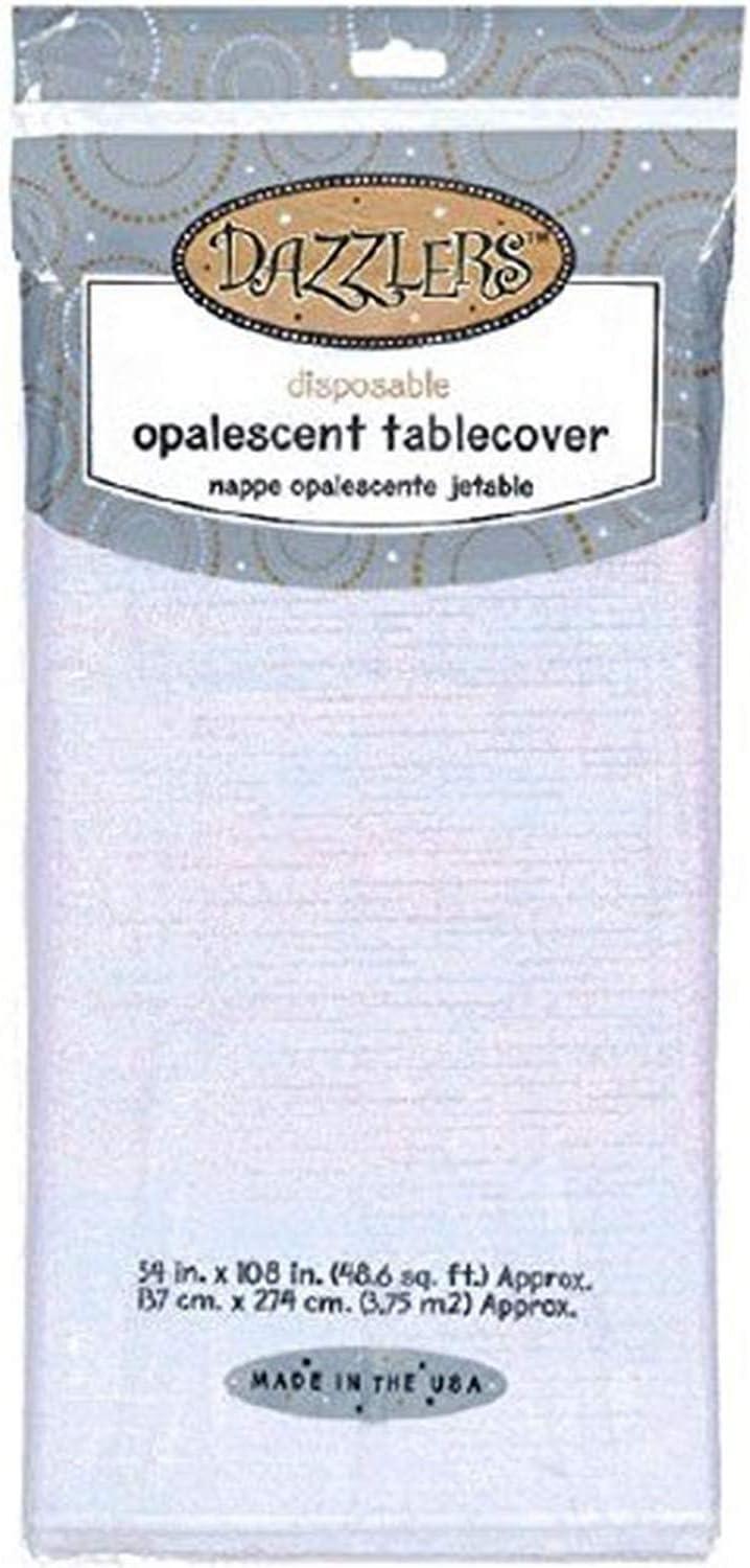 Dazzler Rectangular Pink Opalescent Disposable Tablecover – 54″ x 102″ (1 Pc.) – Premium Easy Clean-Up Plastic Tablecloth – Perfect for Parties & Events(White)