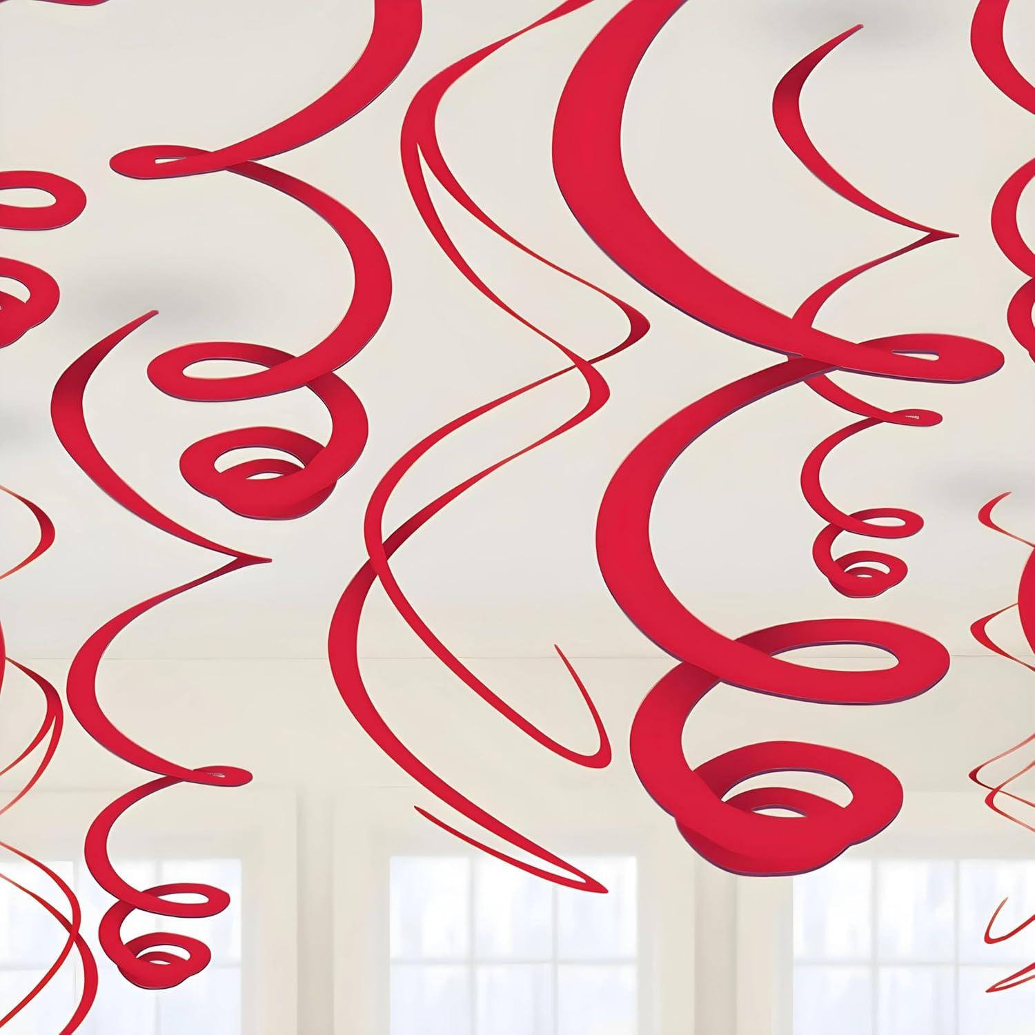 Dazzling Gold Plastic Swirl Decorations – 22″ (Pack of 12) – Versatile & Eye-Catching Decor(Red)