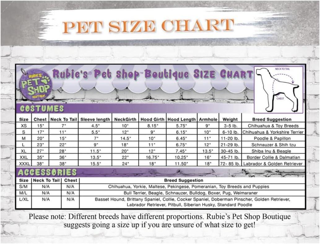 THE RIGHT FIT: Pet size small (6-10LBS), when deciding size, note costumes run smaller than apparel. Refer to the size chart and sizing video before choosing. Do not select size based on breed alone, as fit may vary.