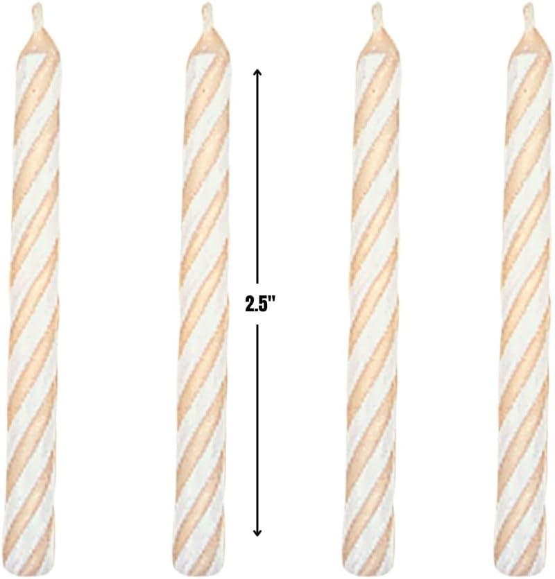 Elegant White Candy Stripe Spiral Candles – 2.5”, 24 Pieces – Perfect for Parties & Celebrations