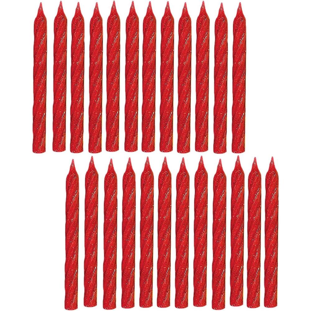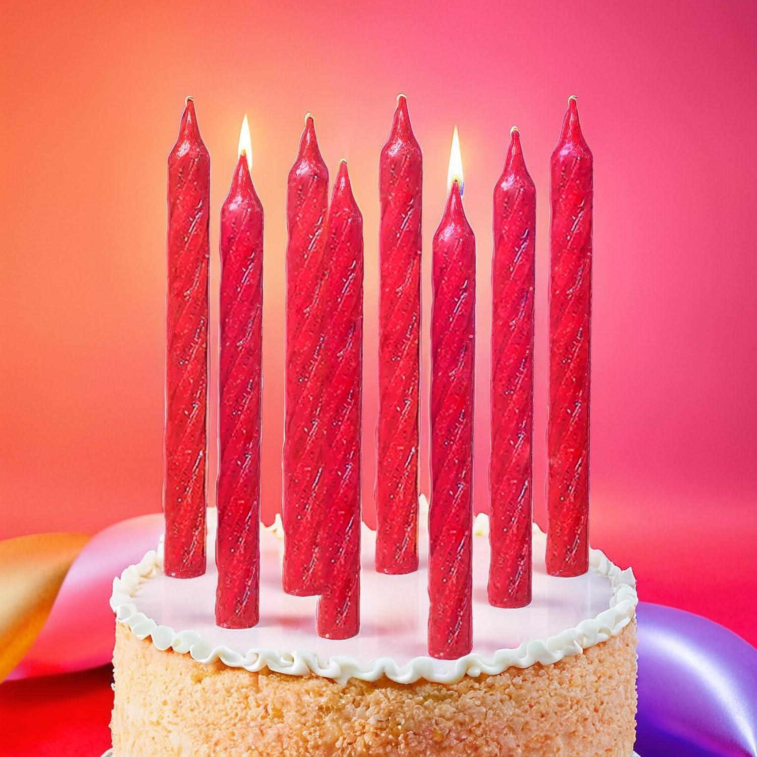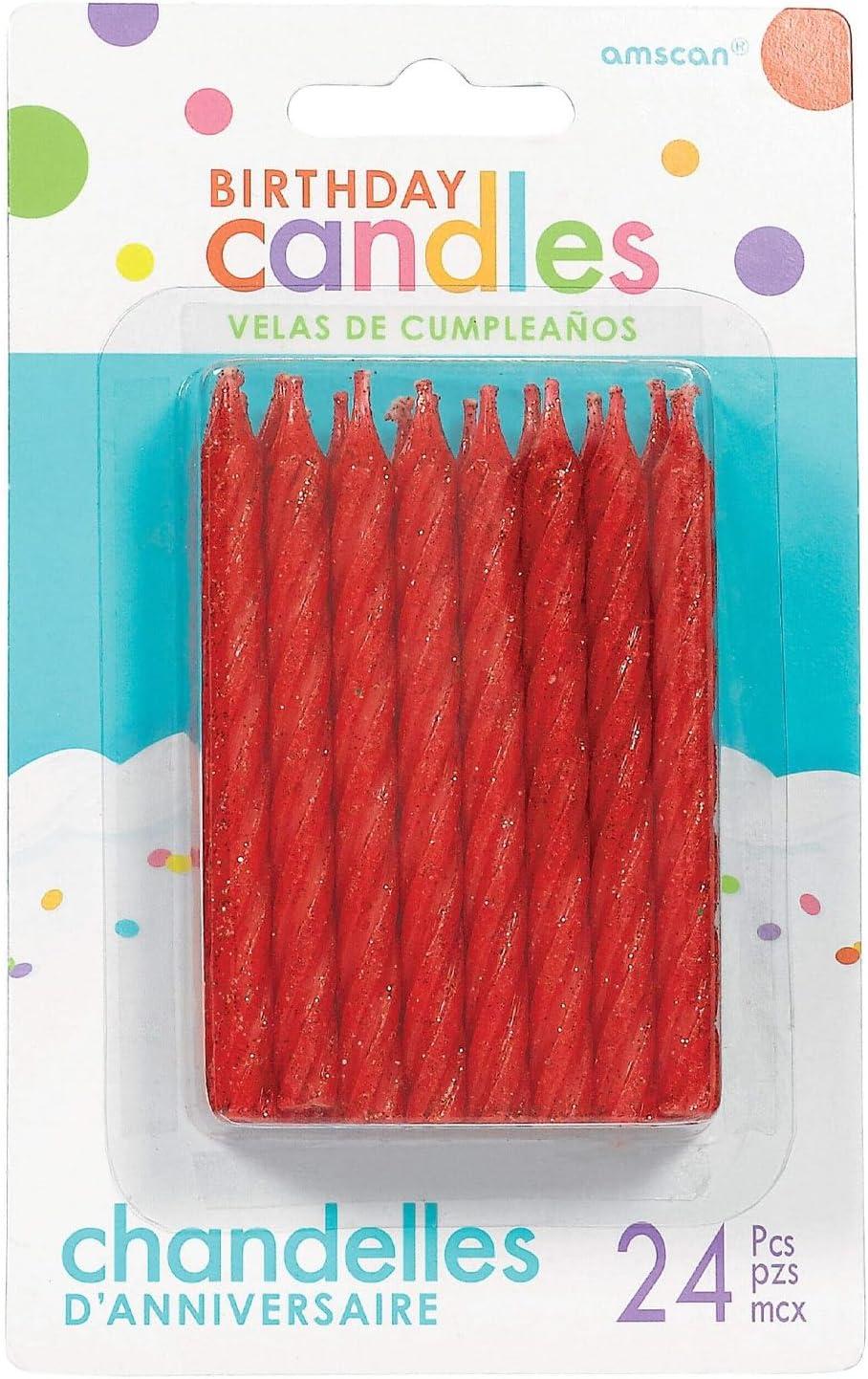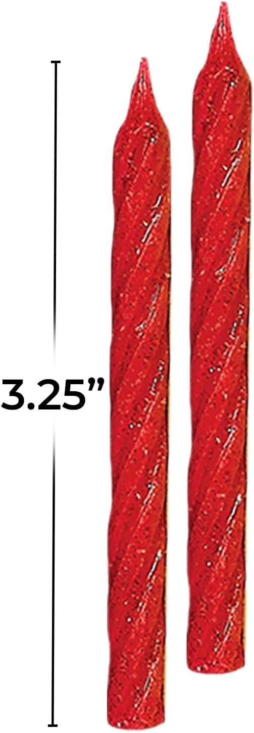 Large Red Glitter Spiral Candles – 3.25″, 24 Pieces – Elegant Party Candles for Cake Decoration & Celebrations