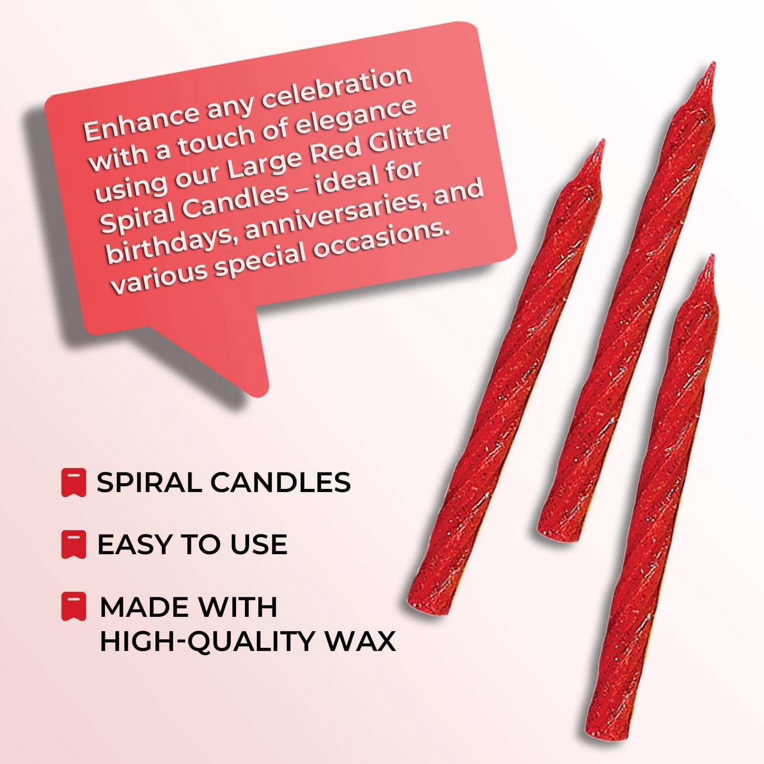 SPIRAL CANDLES: Add a touch of elegance to any celebration with our Large Red Glitter Spiral Candles – perfect for birthdays, anniversaries, and more.