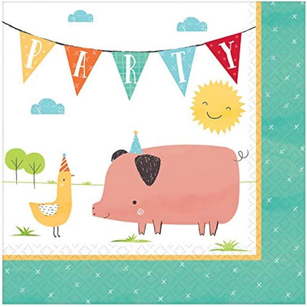 Multicolor Luncheon Napkins – 6.5″ x 6.5″ (36-Pack) – Vibrant & Disposable Paper Napkins for Birthday Parties and Celebrations, Wish Big Birthday(Barnyard Birthday)