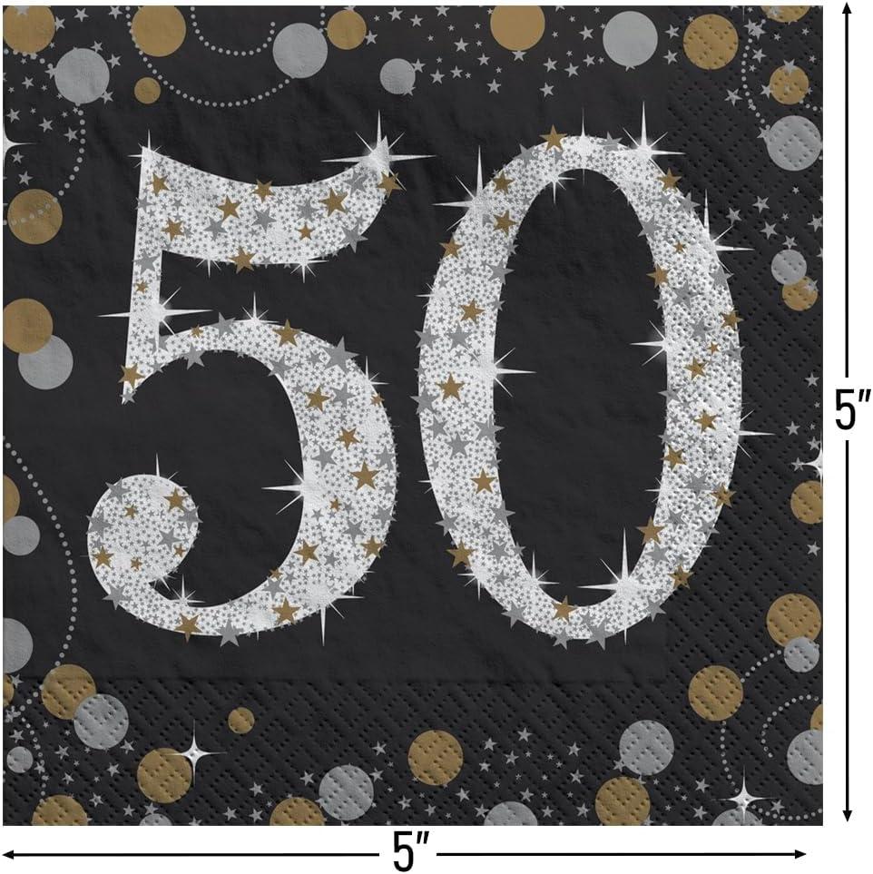 VIBRANT DESIGN: Featuring a dazzling multicolor design, these napkins are perfect for commemorating the big 5-0. Their eye-catching sparkle adds a touch of glamour to your party decor.