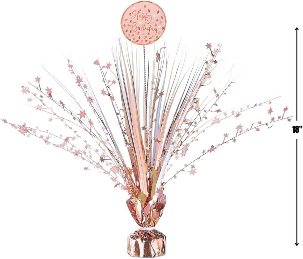 Pink Blush Birthday Tinsel Spray Centerpiece – 18″ (Pack of 1) – Ideal Table Decoration for Parties & Celebrations