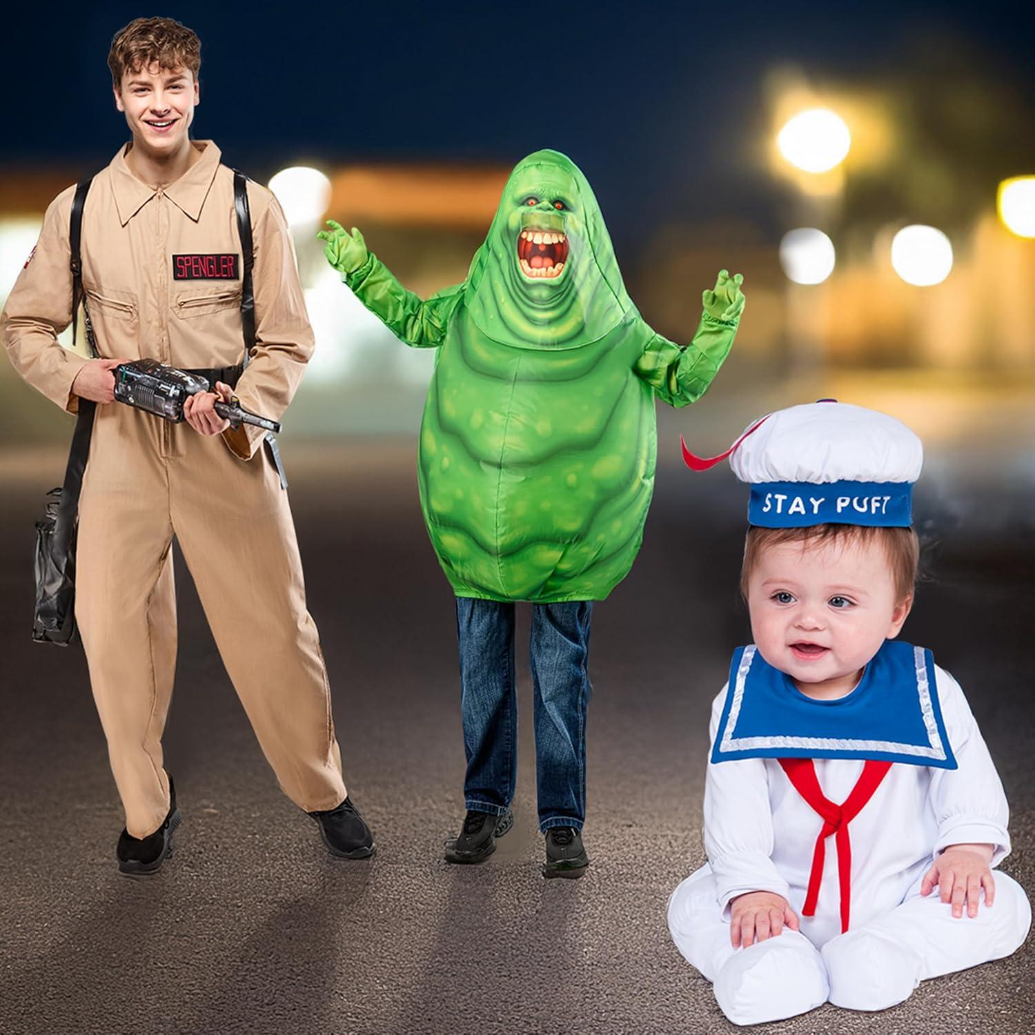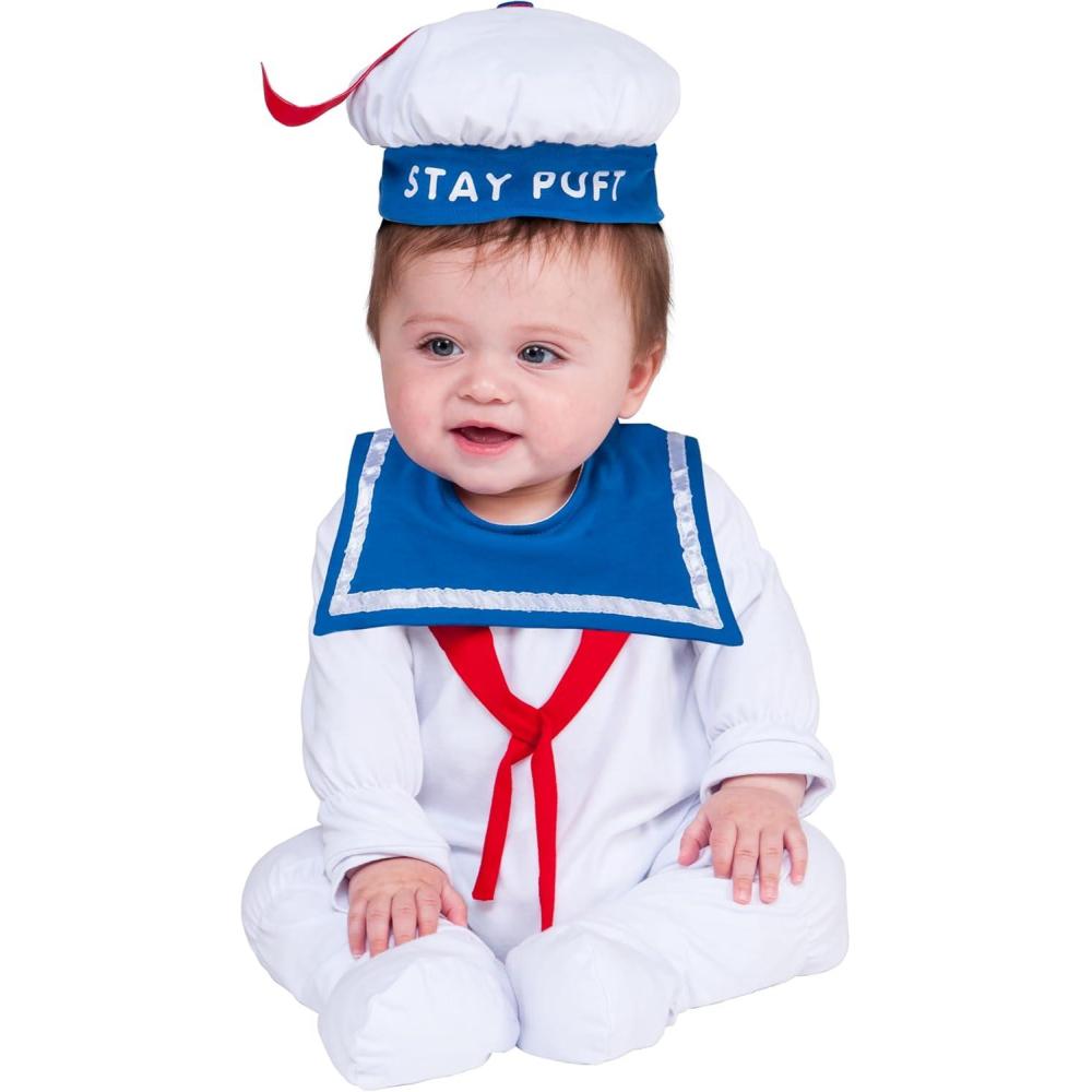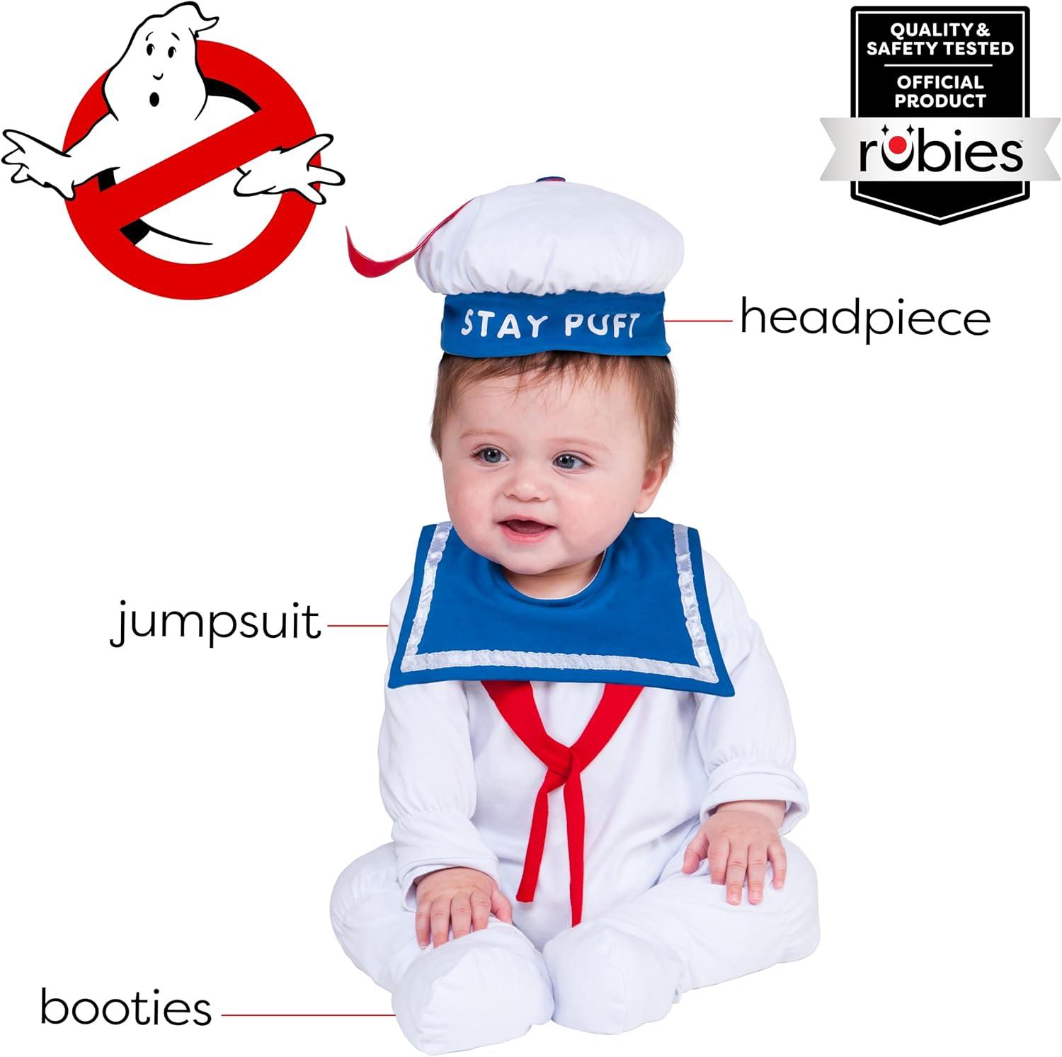 Stay Puft costume romper and hat. IMPORTANT SIZE INFORMATION: Costumes are sized differently than clothing, important to review Rubie's size chart before making selection . OFFICIALLY LICENSED Ghostbusters costume, items shipped and sold by Amazon are guaranteed authentic. Rubie's has classic and new movie Ghostbuster costumes in sizes for the entire family, even your pet. Rubie's brings fun and fantasy to dress-up with the broadest selection of costumes and accessories, offering everything from full mascot suits to masks and wigs, from deluxe licensed costumes to simple starter pieces, from costume shoes to character make-up, and so much more. Family-owned, family-focused, and based in New York since 1950, Rubie's promotes safety in dress-up so you can relax and have a great time while looking the part. Look to Rubie's for every costume occasion and season: Halloween, Christmas, Mardi Gras, Easter, and all in-between.
