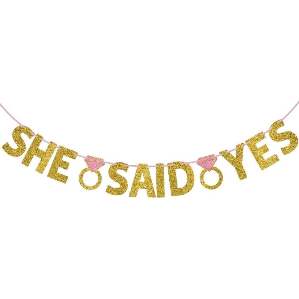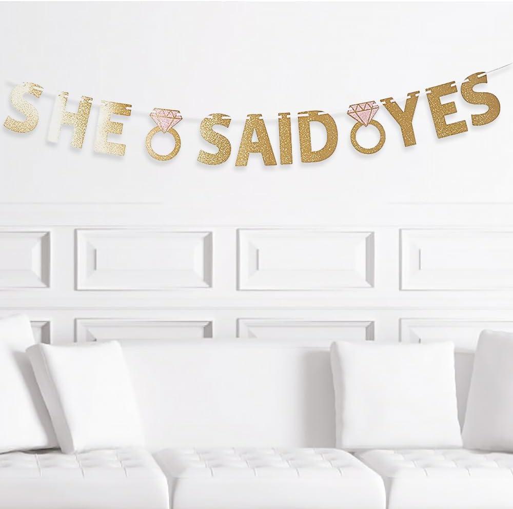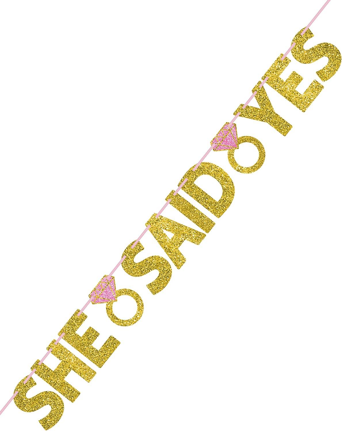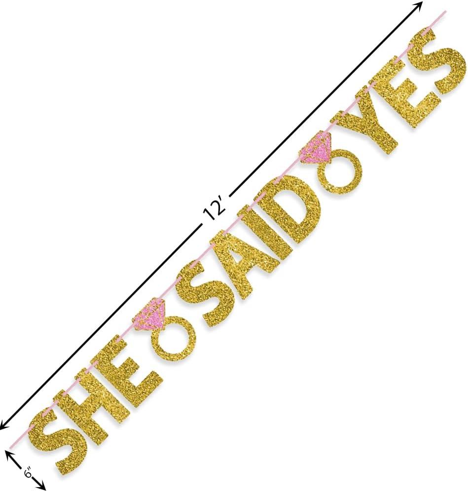 Sparkling “She Said Yes” Wedding Letter Banner – 6″ Letters with 12′ Ribbon | Stunning Gold & Pink Glittered Paper | Perfect for Engagement Celebrations & Bridal Showers(Pack of 1)