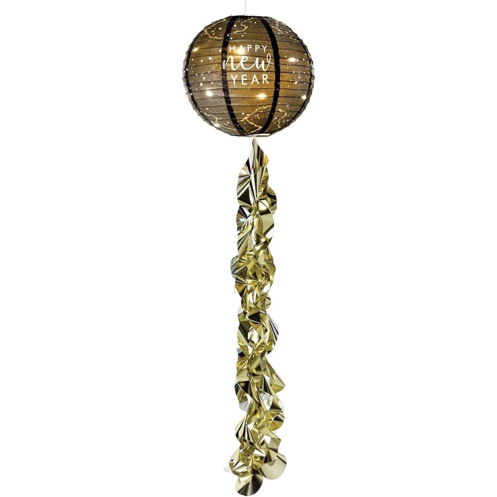 Vibrant Gold “Happy New Year” LED Light Up Lanterns (9.5″ Diameter) – Premium Quality Paper with Metal Frame & Foil Design – Perfect for Festive Season & NYE Party Decor