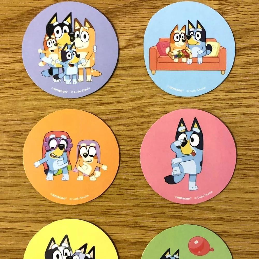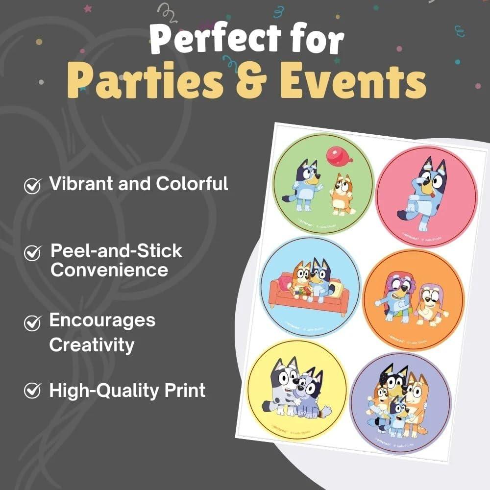 Add some stylish vibe to your occasions uisng these bluey stickers in assorted colored background and will satisfy you with its high-quality material and pleasing look and can be easily disposed after use.